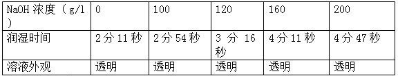 不同NaOH溶液的潤(rùn)濕性能:(試驗(yàn)條件:30℃、上升2cm測(cè)試時(shí)間(寬度)×2cm(高)棉條。)